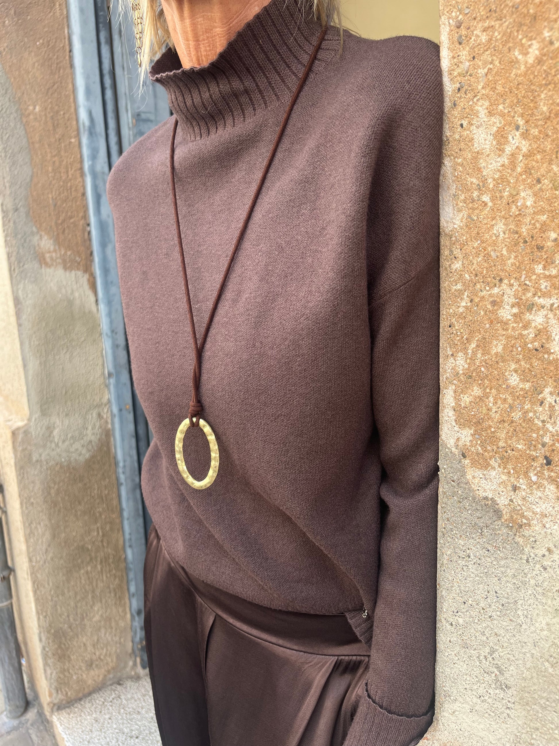 Collar largo de 90cm de antelina redonda con colgate dorado