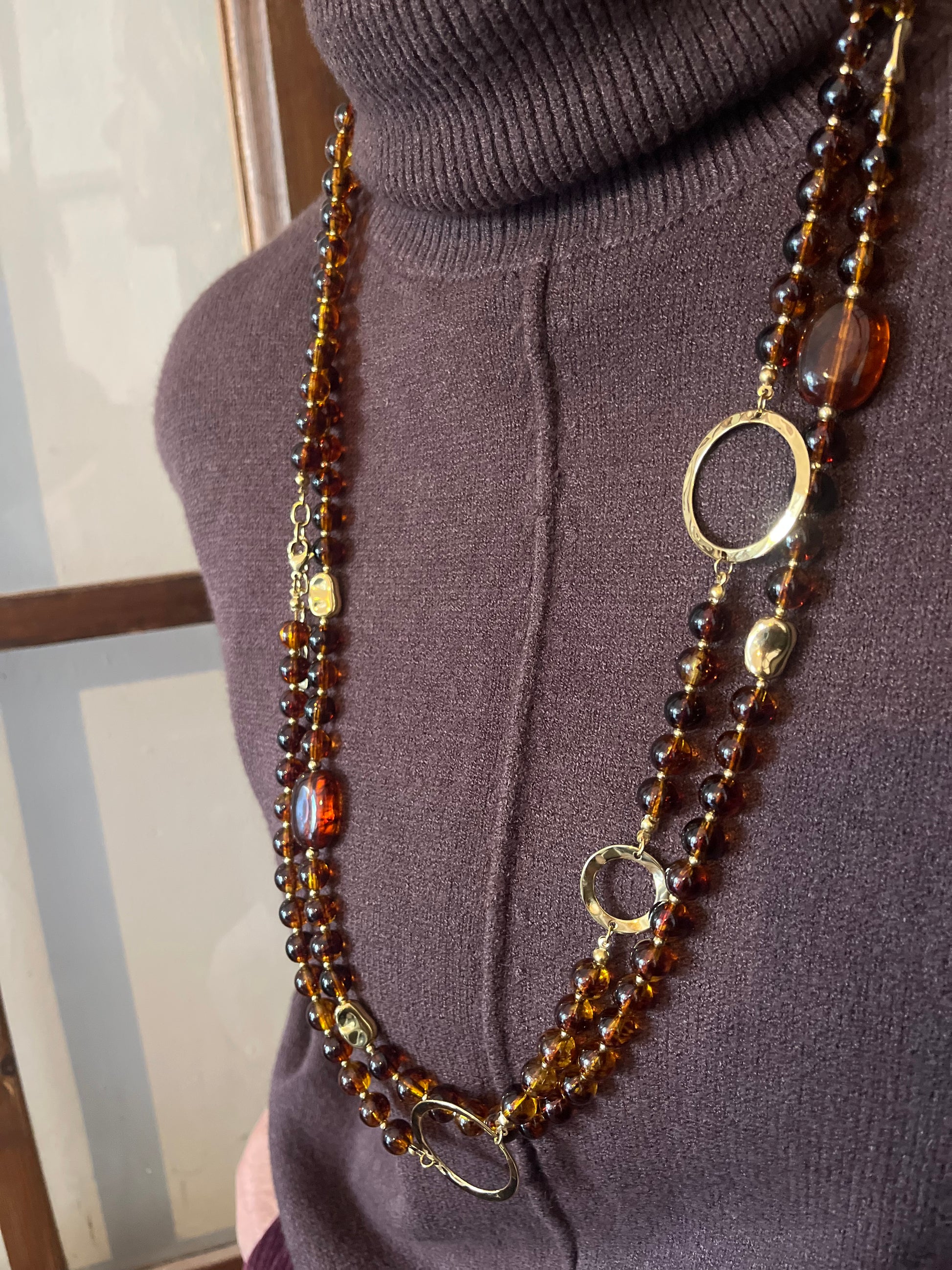 Collares largos de 90 cm combinando acero dorado y piedras en marron y camel... combinable con todos los outfits... muy neutro