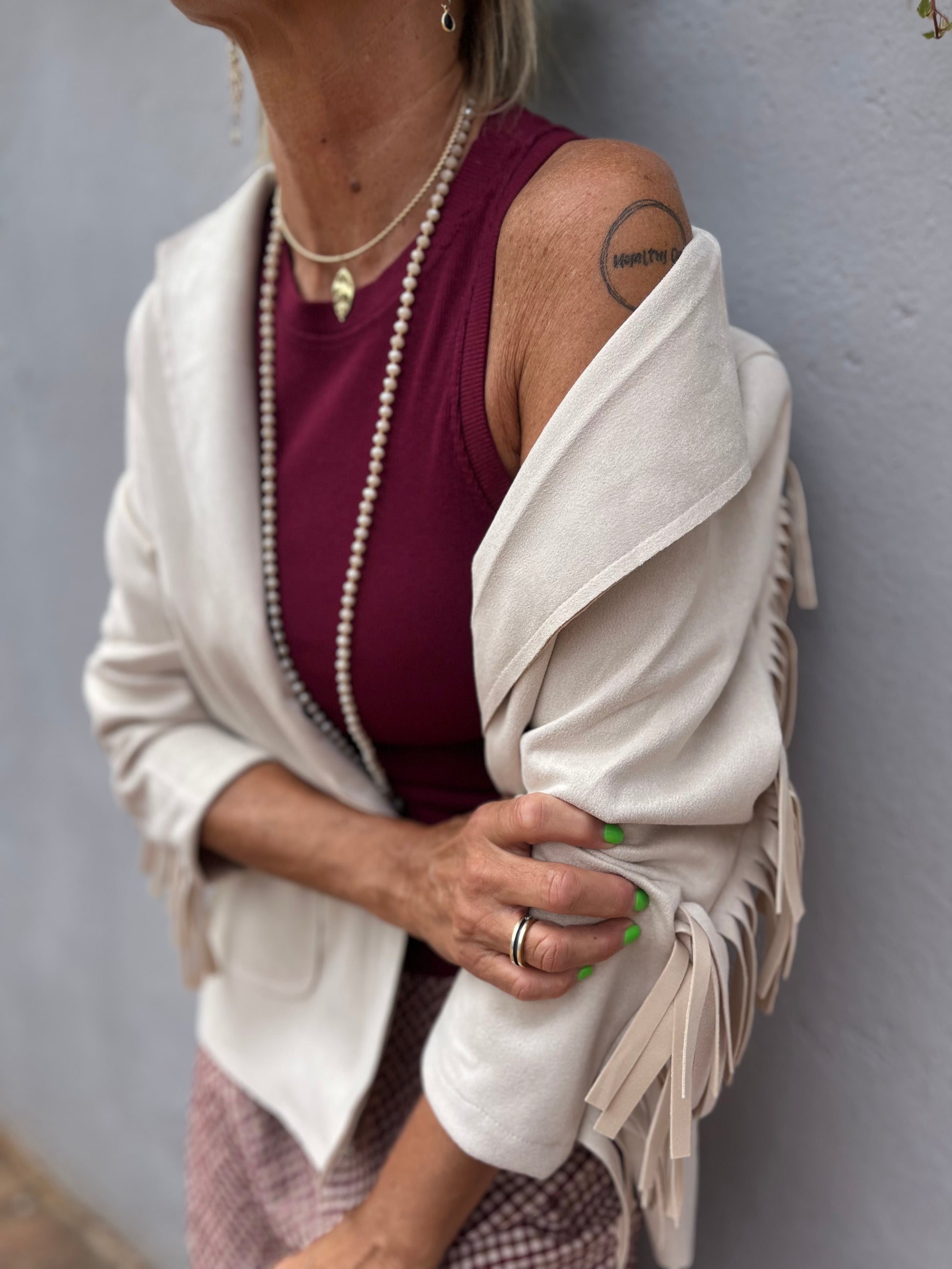 Collar largo de bolas semiredondas, con nudos intercalados de 1.60m de largo... apto para hacer dos vueltas al cuello