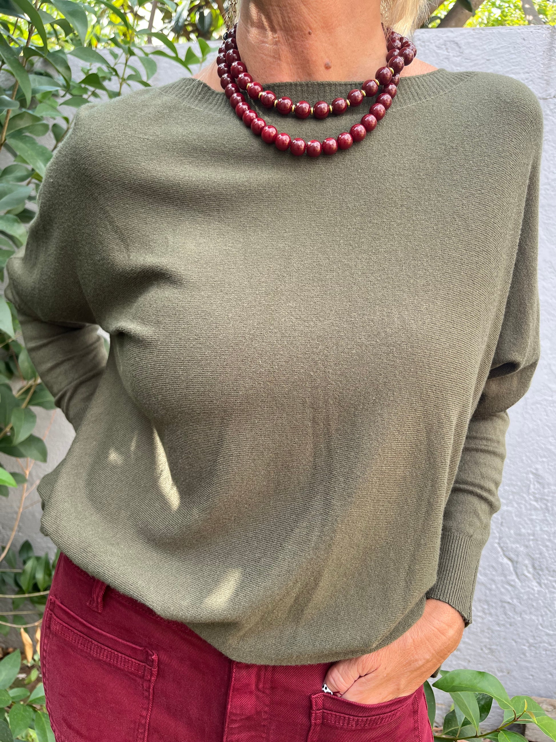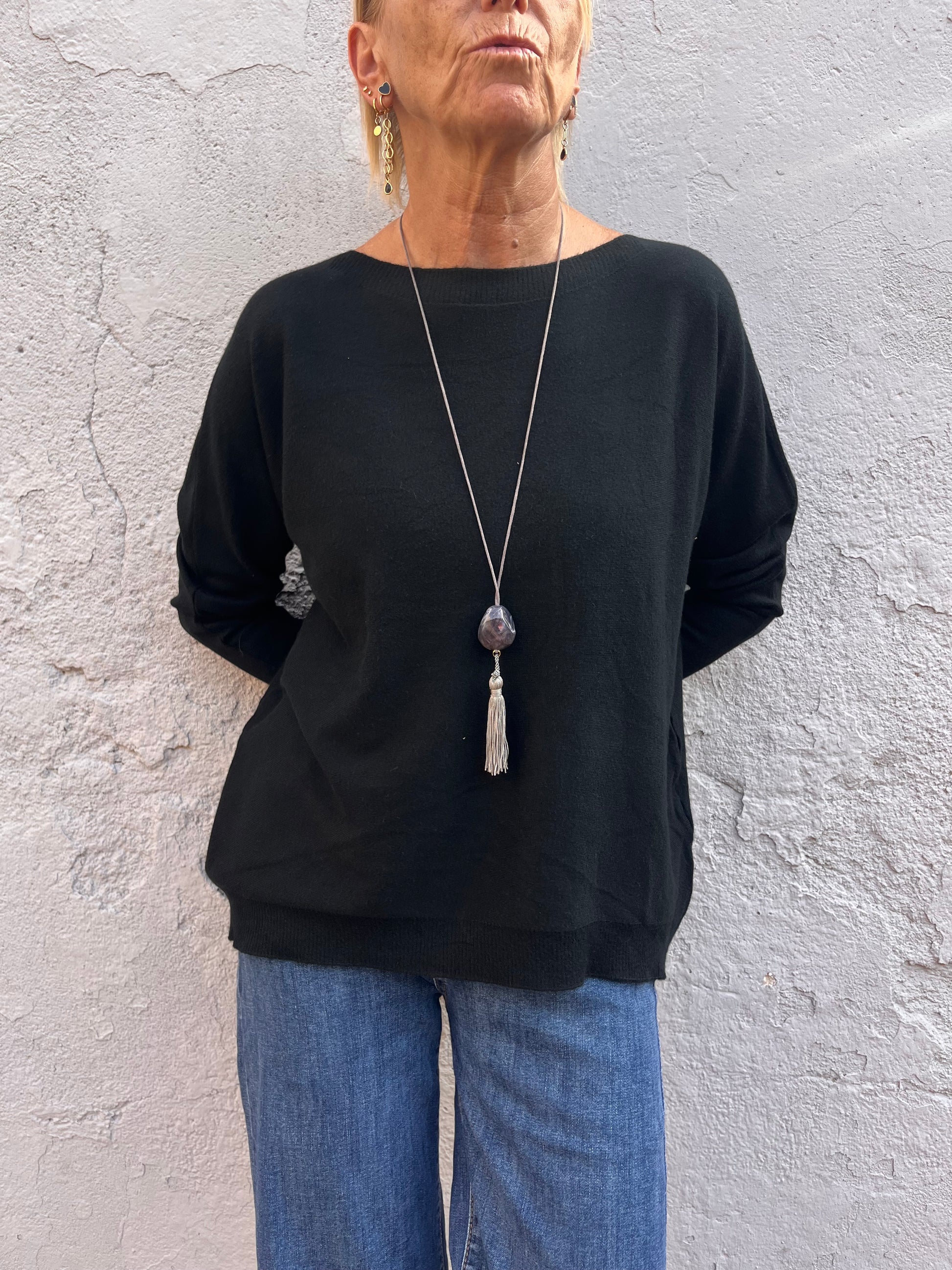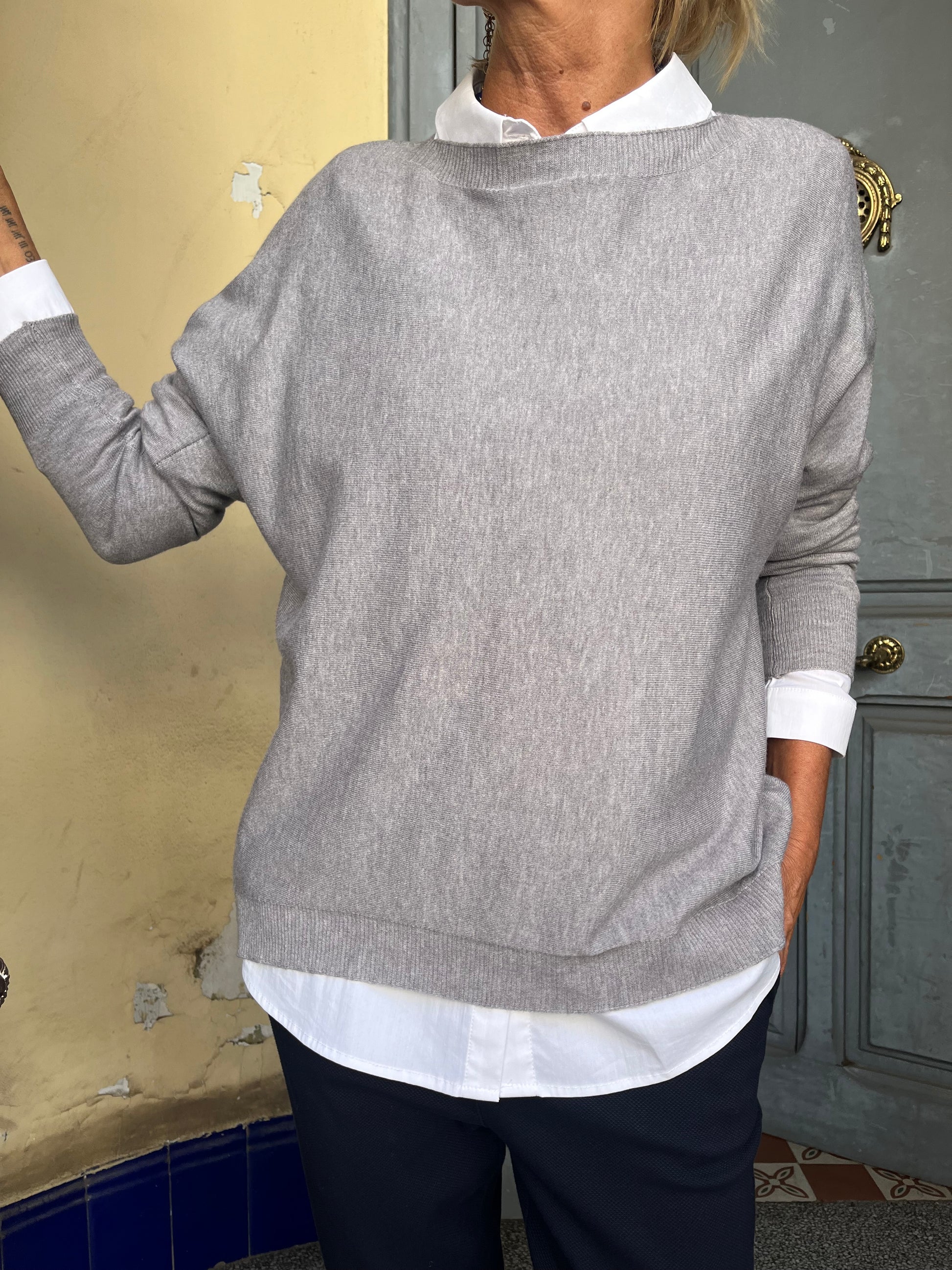 Jersei de punto de tejido super agradable gracias a la viscosa y polyester, cuello barco y amplio