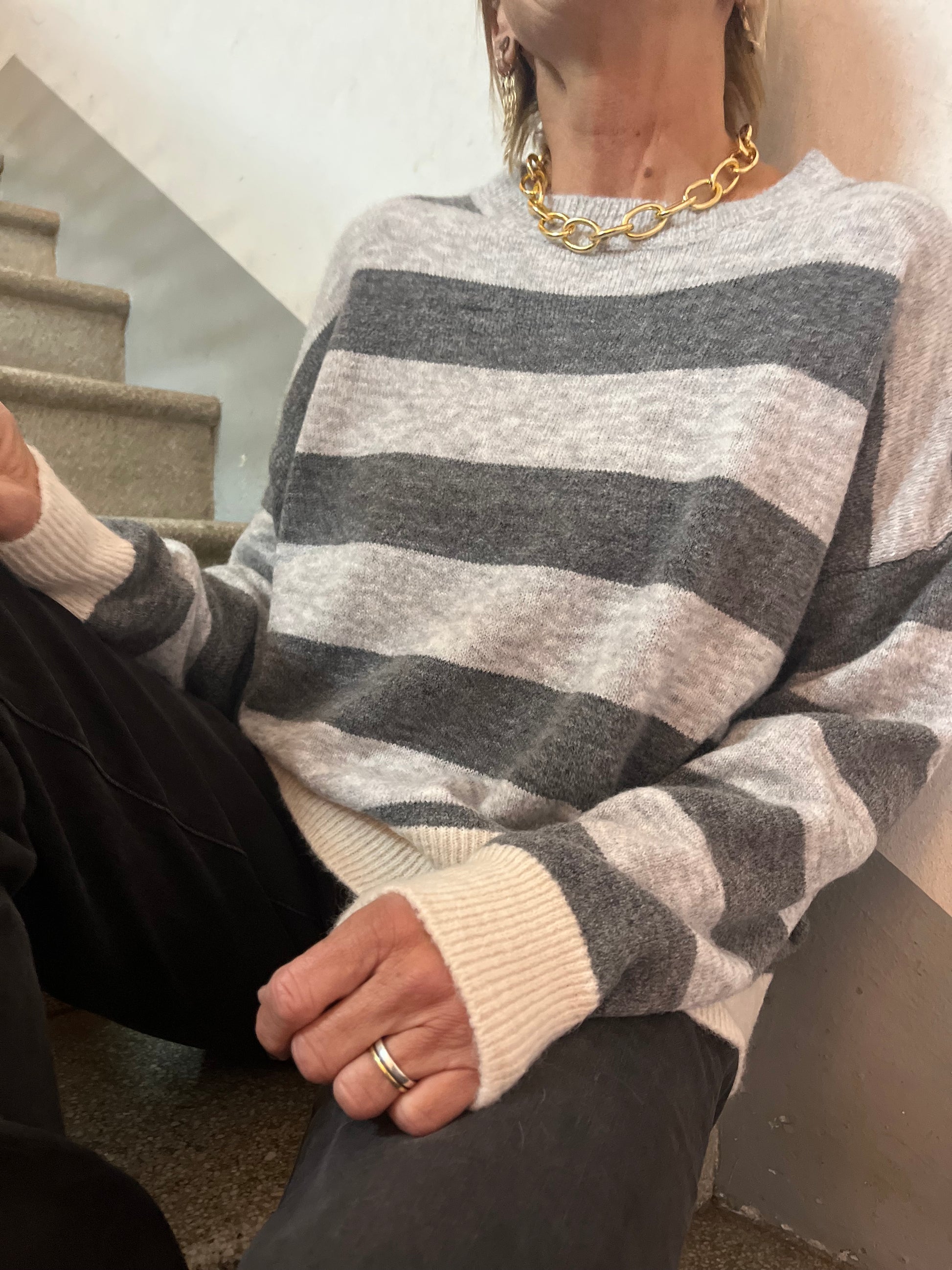 Jersei cuello caja, de rallas bicolor y contrastado puños, cuello y canalé inferior en crudo